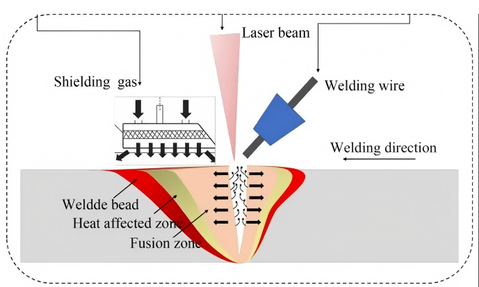 Añadiendoun alambre El alimentador de la máquina de soldadura láser crea una soldadura alimentada por hilo láser más potente.