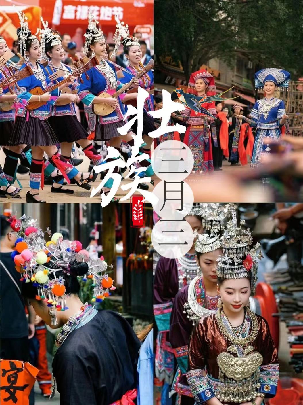 Este período marca un importante festival tradicional conocido como “Sanyuesan” (el tercer día del tercer mes lunar), un momento en el que la gente honra a sus antepasados, reza por la buena fortuna y celebra la unidad entre el pueblo Zhuang. Los orígenes del festival se remontan a antiguas leyendas.